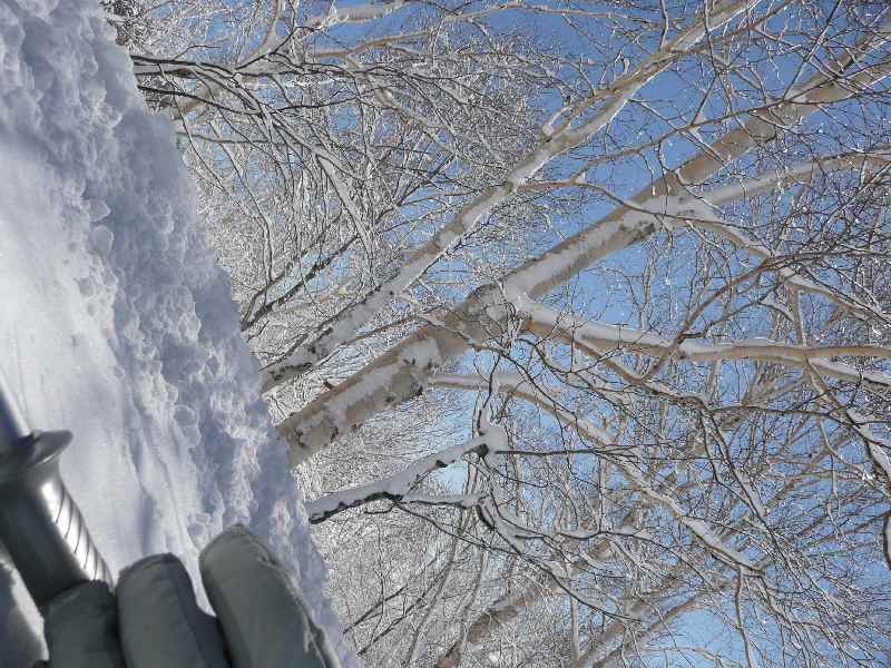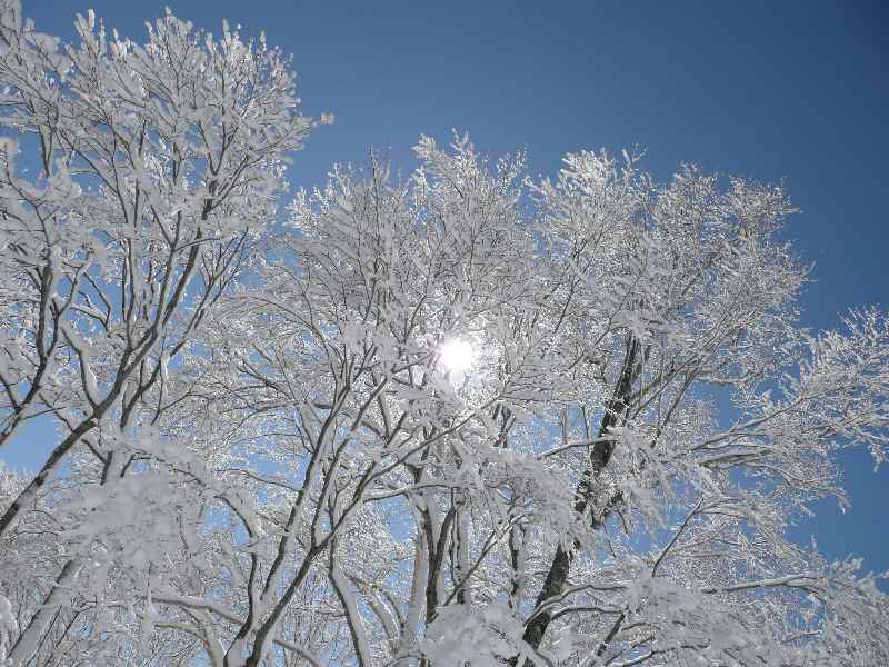 雪被った木と青空最高←