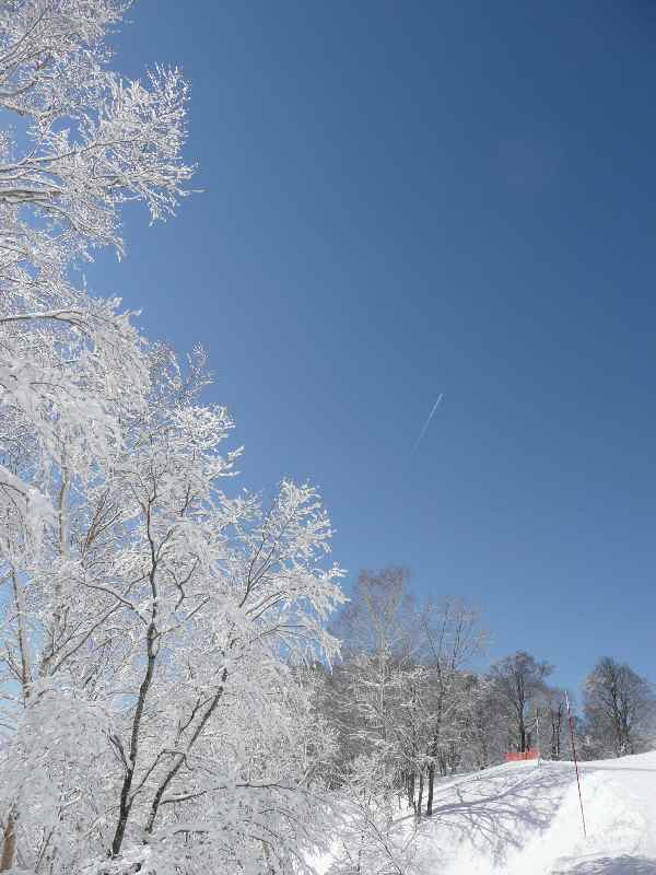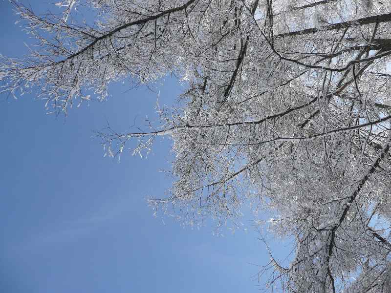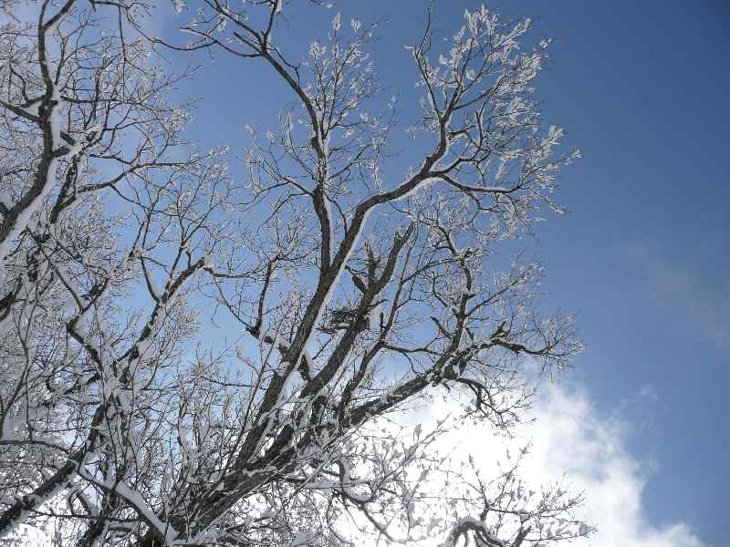 雪被った木と青空最高←
