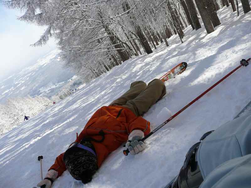 2人で滑ったときに5、6回は寝転んで